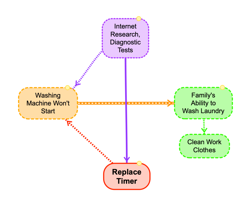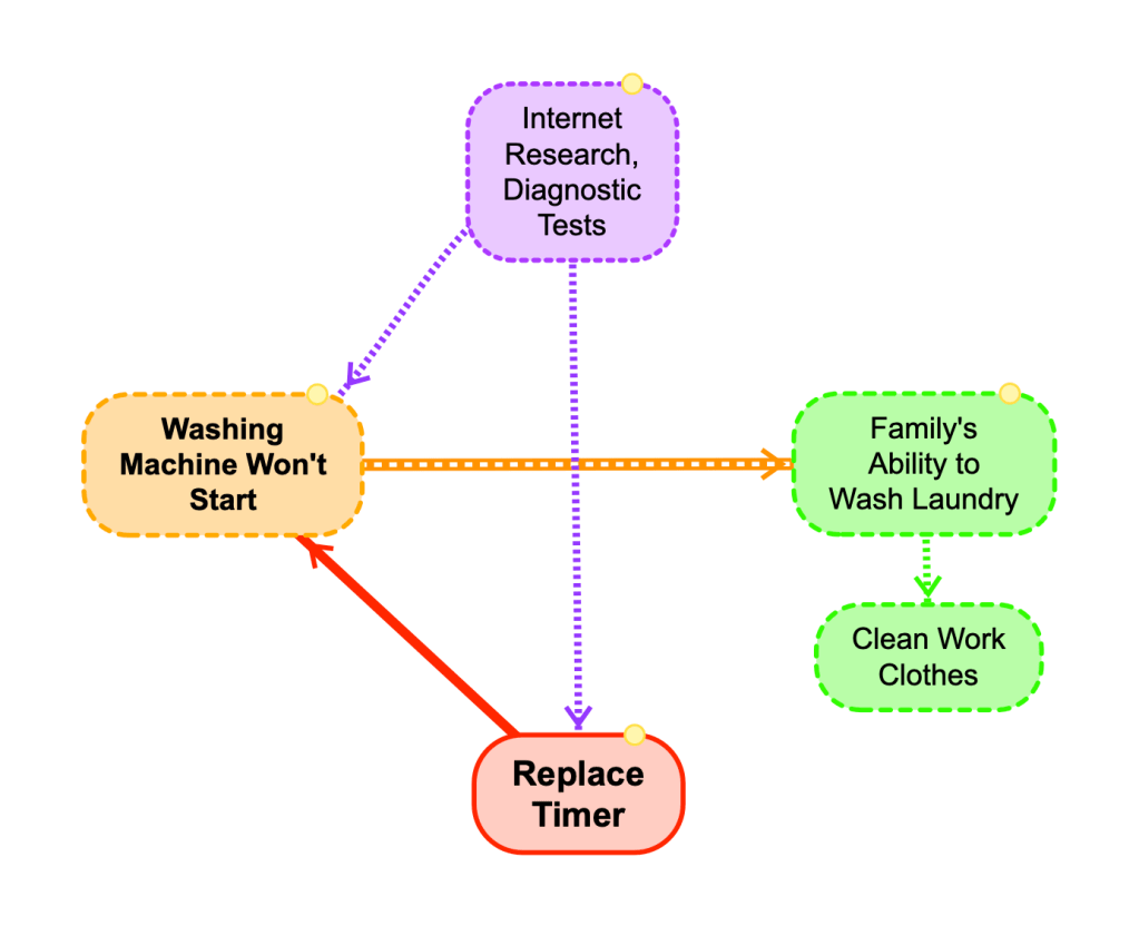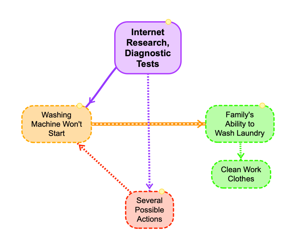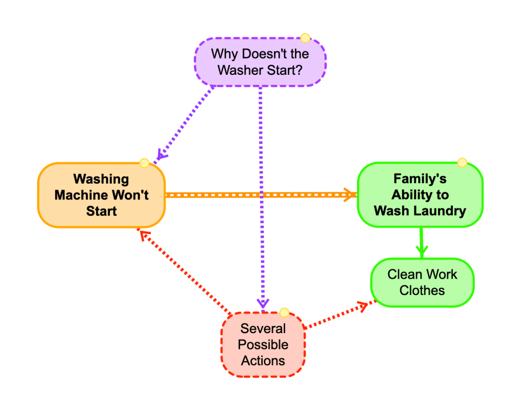 - Objects of Concern add clarity to the problem and its resolution. They are the “why” of the problem and give purpose to the inquiry and remedial actions. Further, Concerns help determine the appropriate kind of action and the nature of the solution. In my simple example, fixing the washing machine will maintain my family’s ability to do laundry from home and my being able to wash my work clothes. If my primary concern were my work clothes, then the appropriate solution would be washing them at a laundromat and I could forget about fixing the machine. Finally, one further point is that Objects of Concern may be linked in a network of Concerns. Concerns can sometimes form networks of support as in this case, where “Ability to Wash Laundry” supports “Clean Work Clothes.”