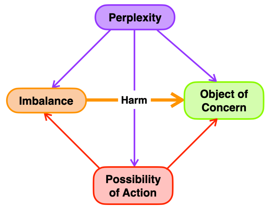 Each element has a particular role to play in understanding and solving a problem. Think of the Object of Concern as the heart of the problem; in addition to adding clarity, it provides the reason and purpose for the problem-solving effort. The Imbalance is the driver of the problem (itself being driven by underlying systems); it is what is threatening or causing harm to the Object of Concern. While Possibility of Action represents that initial hope or desire to do something, the Possibility of Action, in Collaboratic’s framework, is a temporary placeholder for a clearly defined Action that will solve the problem. Understanding the Imbalance and the nature of its harm is the role of Perplexity. However, the chief role of Perplexity is to understand where and how to intervene in order to transform the Possibility of Action into a specific Action. And implementing that specific Action is what solves the problem. Resolving the problem means that the Imbalance and its harm are somehow dissolved or neutralized to render the Object of Concern whole (i.e., back to normal, safe, healthy, …). That is the essence of problem-solving, and it is a process with a beginning and an end.
